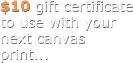 Take our quality tour to find out why we offer the best way to get your photographs printed on canvas. Explore our web pages to discover why you would be crazy to have any other company put your photo on canvas. To get you started, we would like to give you a free $10 gift voucher that can be used with your first purchase for any of our canvas products. For a full list of prices and sizes for our finished prints see our canvas printing pricing page.